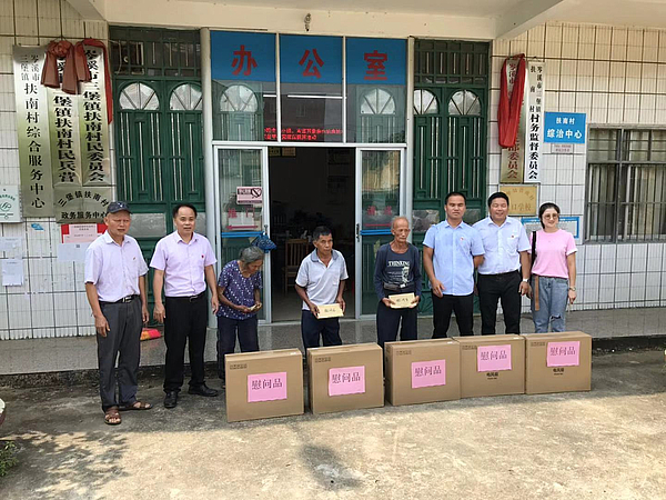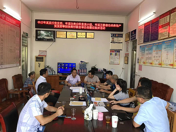 2019年8月8日,中行岑溪市支行党支部,岑溪市住房公积金党小组,岑溪市万象维也纳房地产党支部等到岑溪市三堡镇扶南村联合举办党建促脱贫攻坚活动。