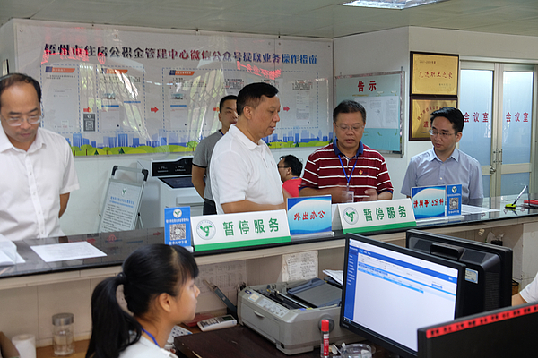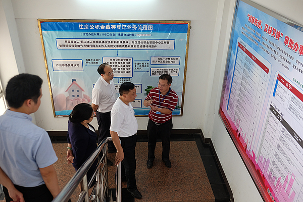 蒋海东副书记一行首先听取了中心黎海荣主任对中心开展“对标先进、又好又快”活动情况介绍,随后,蒋海东副书记就中心各项业务开展情况进行了解,并查看中心“对标先进、又好又快”审批办事服务事项公示清单。蒋海东副书记对中心“对标先进、又好又快”活动开展情况给予充分肯定,并要求中心多渠道开展融资工作,降低融资成本,防控资金风险,用足用好住房公积金,为优化我市营商环境和提升市民居住条件作出更大贡献。