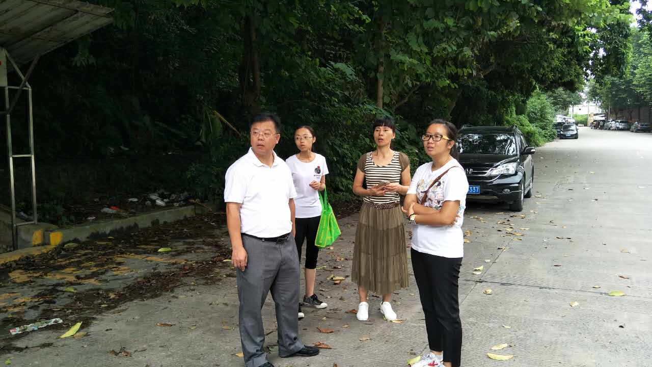 2017年9月8日,中心主任黎海荣同志就“双报到”社区创建“宜居社区”建设的问题清单会同市政相关部门及白云社区领导干部进行现场实地调研,并现场确定整治白云山脚至市八中路段环境整治措施和整治时间。