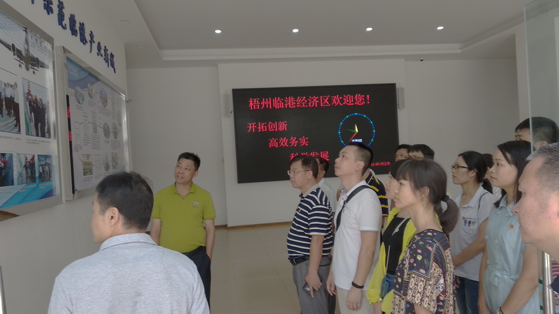 其后,又在梧州临港经济区建设指挥部办公室综合协调办李亿添主任的讲解下,我们认识到临港经济区交通条件优越,是珠江-西江经济带唯一集“水、陆、空、铁”和输气管道于一体、更兼国家级对外开放口岸的经济区,目前吸引了广西西江投资集团、新希望集团、上海和平发展起重集团、西江机场、新港铁路等项目落户。