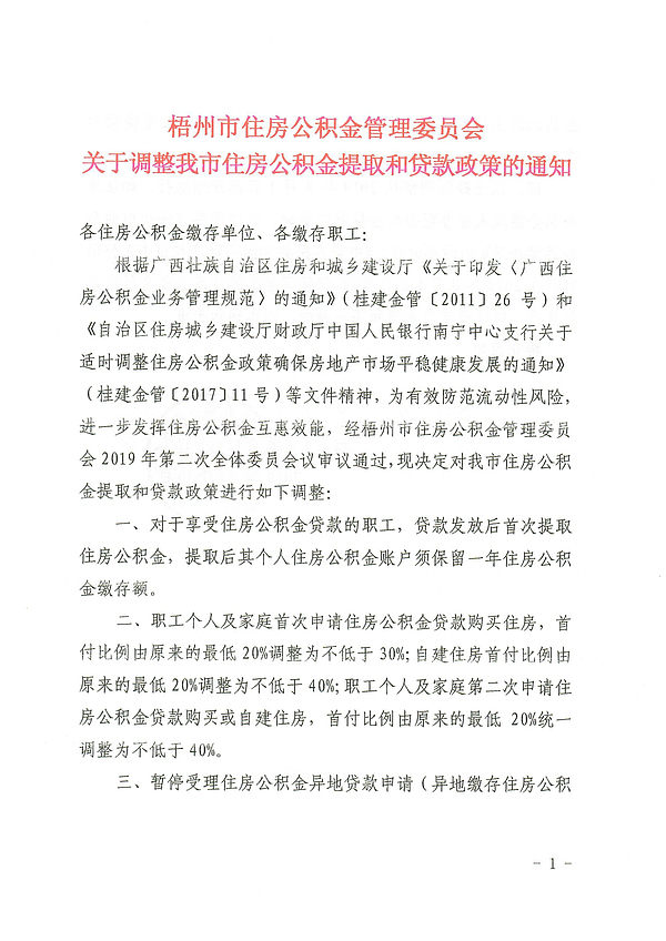 梧州市住房公积金管理委员会关于调整我市住房公积金提取和贷款政策的通知