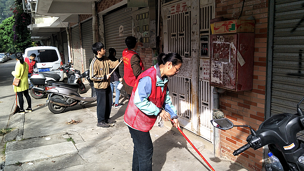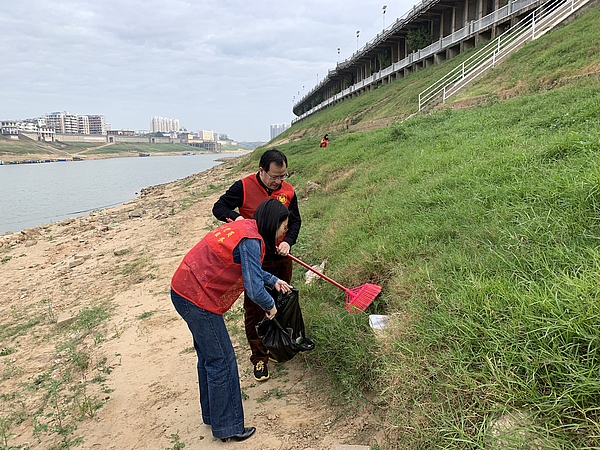 在龙母庙对出河岸草坪上,中心党支部书记、副书记与中心党员干部穿着志愿者红背心,发扬不怕脏不怕累精神,抓实抓细,用钳子仔细清理草坪上的烟头、纸屑、废弃塑料瓶等垃圾;在白云堡小区、白云山风景区周边,中心党员干部用扫把认真清扫卫生死角及道路上的落叶、垃圾,用铲子清理“牛皮癣”小广告等。经过全体党员干部的努力,现场环境焕然一新,变得干净又整洁,周边群众纷纷点赞。