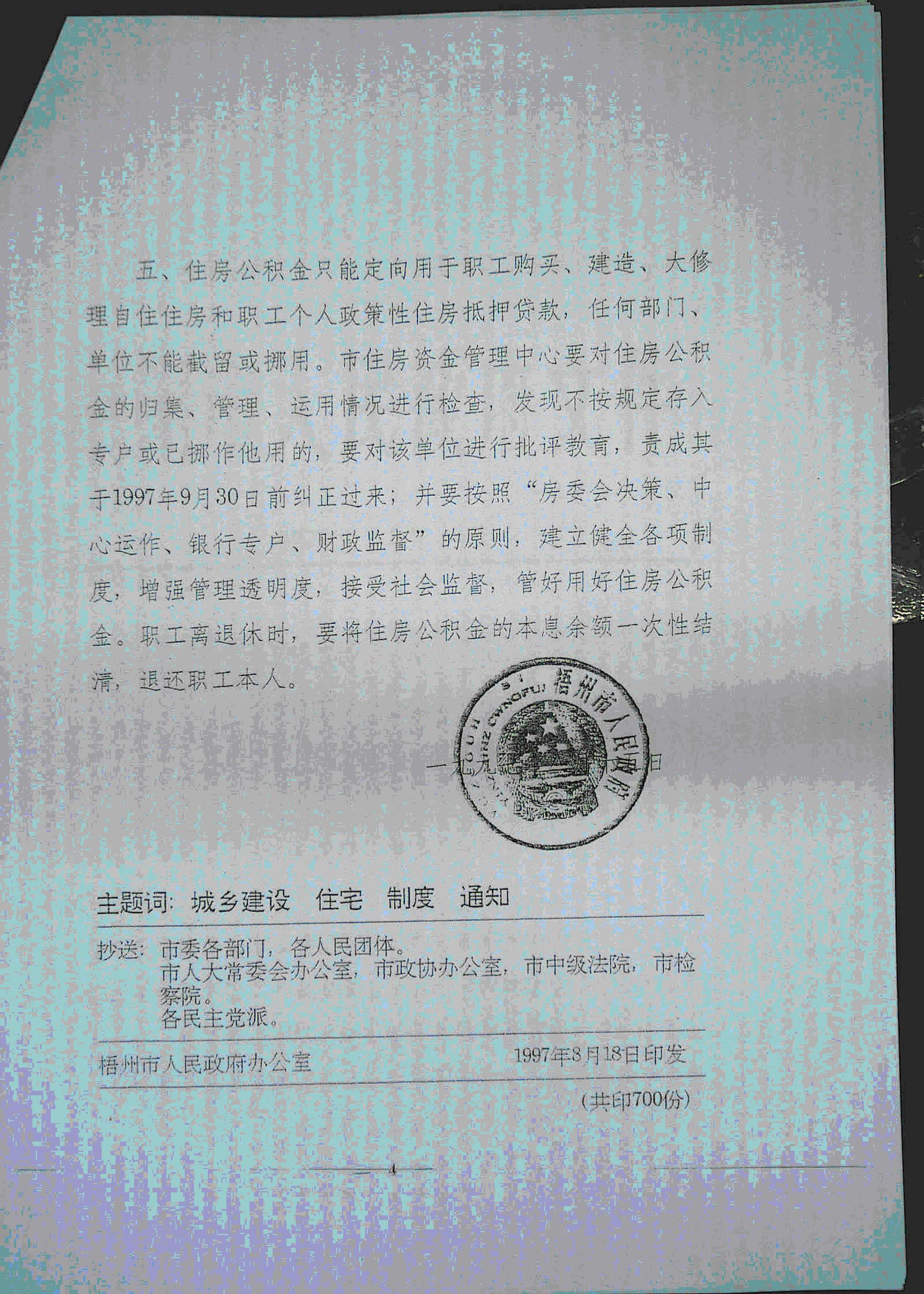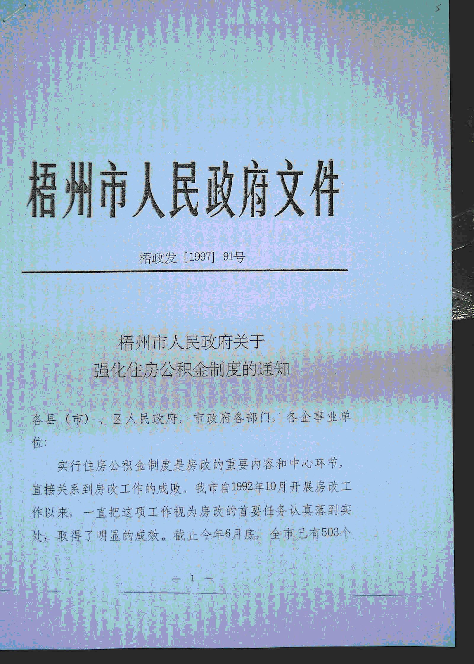 梧州市人民政府关于强化住房公积金制度的通知(梧政发【1997】91号)