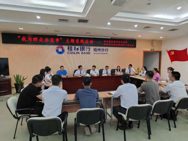 5月25日,中心领导班子前往桂林银行梧州分行开展“我为群众办实事”主题实践活动。双方以党史学习教育为契机,充分发挥双方服务民生的优势,经过充分酝酿,中心与该行达成了业务合作意向,使中心与该行的业务合作上新台阶,为促进梧州民生做出应有的贡献。